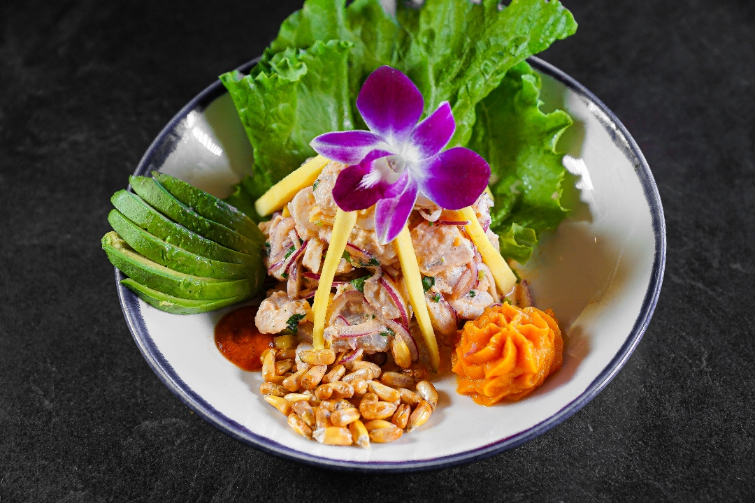 Marinated fish in fresh lime, ginger and garlic mixed with Arequipa onions, and cilantro.